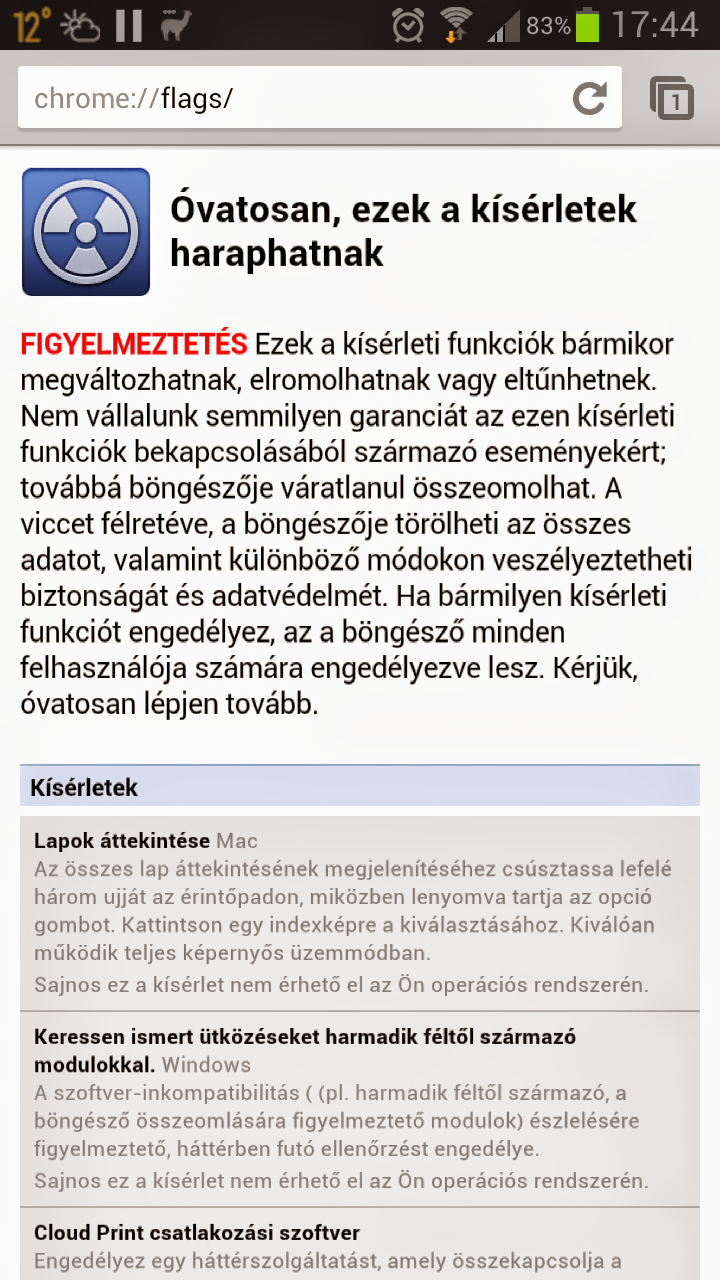 Az ugye megvan, hogy az Android változat alatt is van a Chrome-ban 'flags' beállítás menü? #fbimg #twitpic