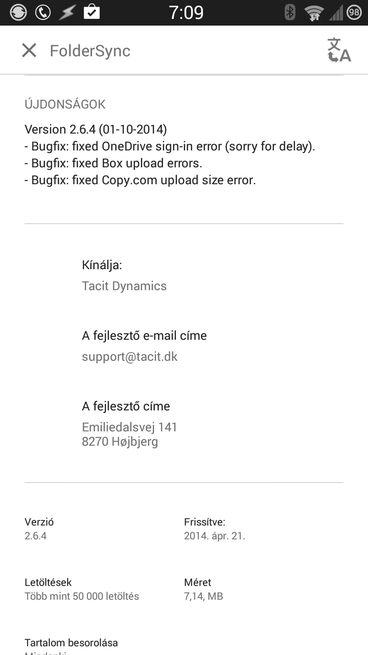 Egy régóta létező hibát javított a FolderSync fejlesztője. Fenyegették a fórumban, hogy a Google Play által publikált címen megkeresik. Ugyanis még a cím publikálás előtt bejelentette, hogy most nem ér rá ilyenekkel foglalkozni. :)